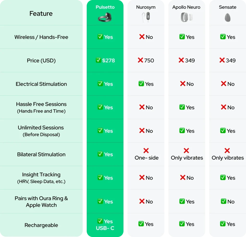 See how Pulsetto wins against other devices